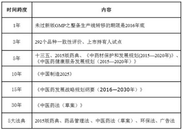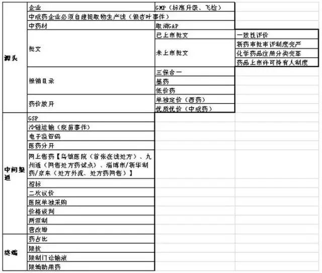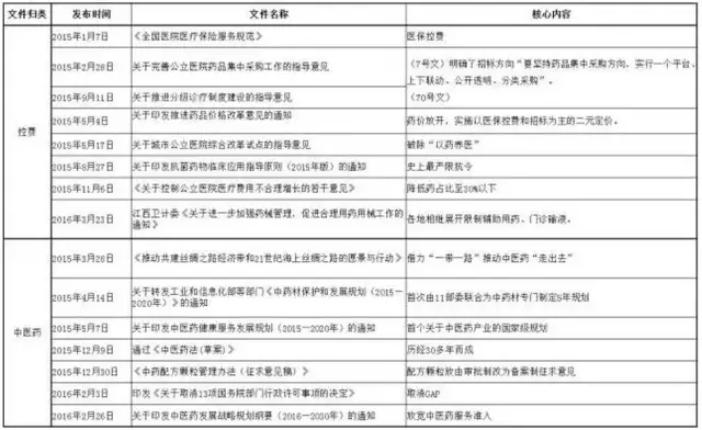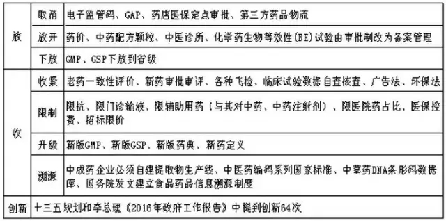 2015年以來,發(fā)布的政策法規(guī)主要圍繞質(zhì)量、創(chuàng)新、控費、中醫(yī)藥這四大核心主題,其目的在于深化醫(yī)改,也就是要解決看病難、看病貴和醫(yī)保透支的問題,而改革的進程卻呈現(xiàn)出由醫(yī)改到藥改再控費,最后寄厚望于中醫(yī)藥(甘肅模式)的格局,就制藥工業(yè)而言,化藥向前看(國際化),中藥向后望(重在傳承)成為必然選擇。