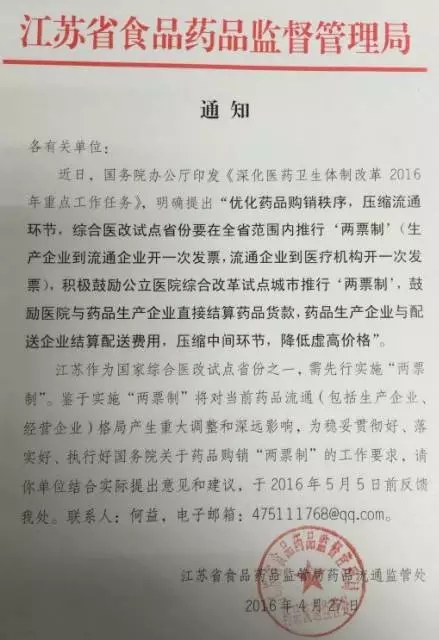此外,大家是否注意到,在朋友圈瘋傳的江蘇的“紅頭文件”中,發(fā)文單位是江蘇省食藥監(jiān)局藥品流通監(jiān)管處。藥品集中采購的主管部門不是衛(wèi)計委么?為啥是藥監(jiān)部門首先積極響應政策?