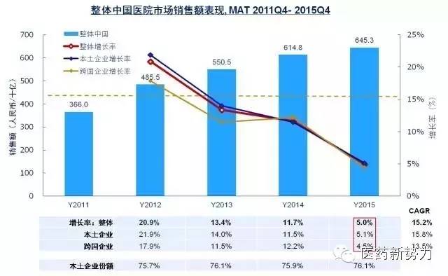 基于目前可預見的各種挑戰,IMS Health對于中國醫藥市場的未來幾年增長預測趨于謹慎:預計2016至2020年中國醫藥市場將增長6.9%。