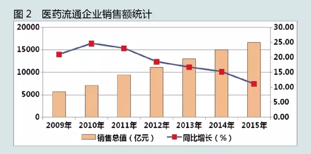 據商務部統計快報:2015年藥品流通市場規模穩定增長,但增速進一步放緩。全國七大類醫藥商品銷售總額16,683億元(含稅),扣除不可比因素同比增長11.1%,增速較上年同期回落3.8個百分點。其中,藥品零售市場3337億元,扣除不可比因素同比增長8.8%,增幅回落0.3個百分點。