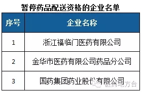 一、暫停配送資格。因企業業務調整等原因,自6月8日起暫停浙江福臨門醫藥有限公司等3家企業在我省藥品交易平臺配送資格,并解除其與涉及產品的原配送關系。請各有關醫療衛生機構與投標人及時做好配送關系維護工作。