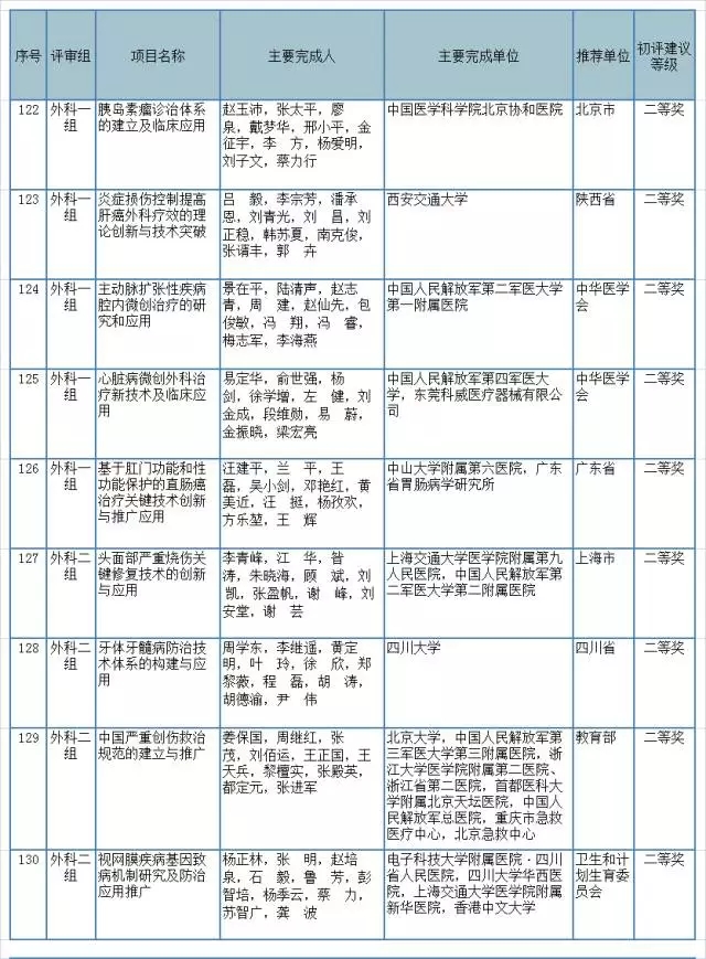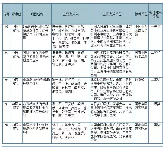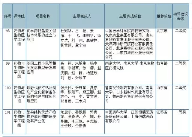 2016國家科技獎和技術發明獎初評名單公布(醫藥界)