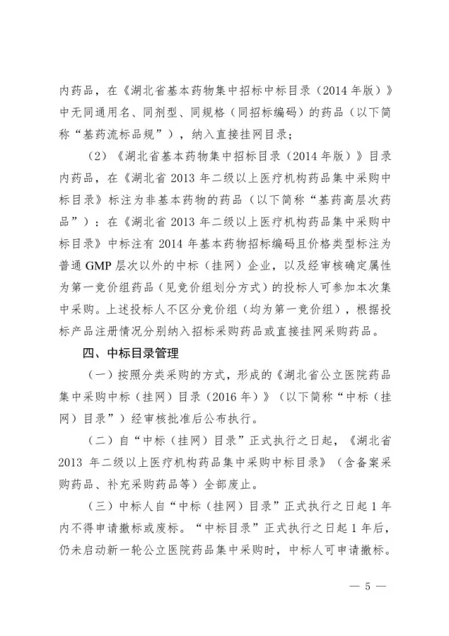 1、湖北省2016年度公立醫院藥品集中招標采購文件