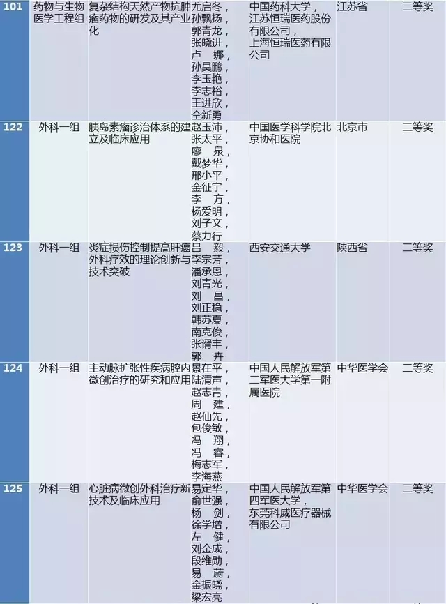 其中國家技術發明獎一等獎由哈爾濱醫科大學的張亭棟和周晉獲得,其獲獎項目為《治療急性早幼粒細胞白血病的特效藥亞坤酸注射液的發明》。