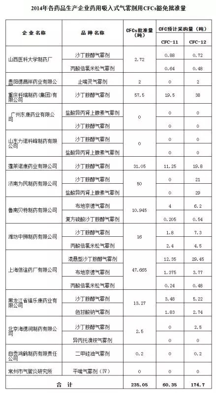 據報道,我國于1991年簽署了相關國際協議,承諾對氟利昂等臭氧層破壞物質的生產、使用實行逐步削減的控制措施。為滿足我國哮喘和慢性阻塞性肺病患者的臨床用藥需求,我國自2009年起又啟動了藥用吸入式氣霧劑用氟利昂的豁免申請工作,豁免期為2010-2015年。自2016年起,我國將不再申請藥用氟利昂的使用豁免,并開始逐步淘汰使用氟利昂成分的藥用吸入劑。