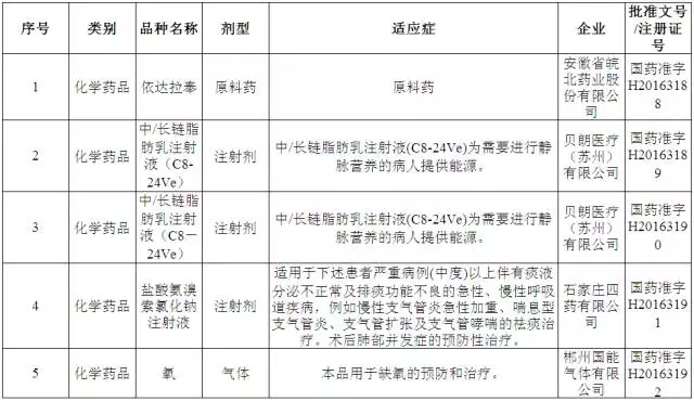 2016上半年已批準(zhǔn)藥品上市品種目錄