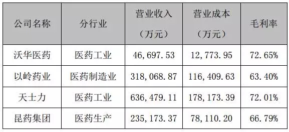 問題3 你公司當期醫藥工業產品毛利率為72.65%,而你公司當期計提存貨跌價準備65萬元,請你公司結合經營環境、同行業公司情況、主要產品銷售情況、公司存貨及存貨跌價準備變動情況說明毛利率較高的原因與合理性,以及存貨跌價準備計提的充分性與合理性。