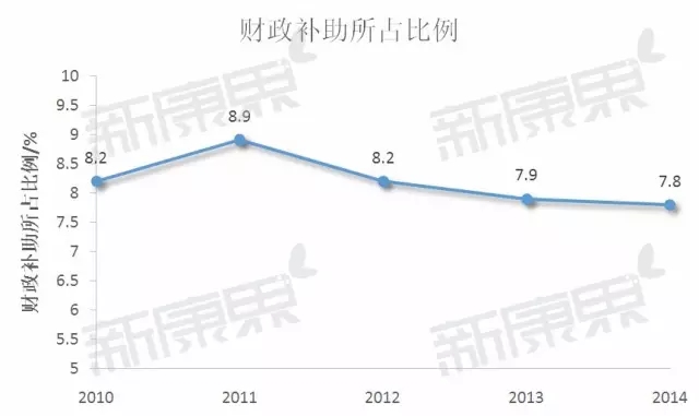 醫(yī)院方面多年來一直呼吁政府加大財(cái)政補(bǔ)貼,來緩解“醫(yī)藥分家”政策給醫(yī)院帶來的壓力,但從統(tǒng)計(jì)結(jié)果來看,國家財(cái)政補(bǔ)貼始終維持在8%左右,與發(fā)達(dá)國家約15%的分量還有較大差距。