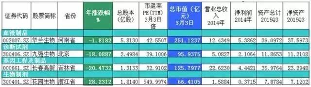 血液制品4家,診斷試劑4家,基因工程及制品5家,生物制劑12家。
