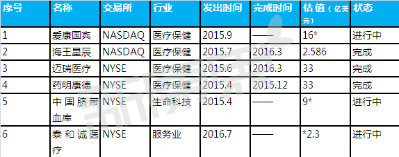 2015.4-2016.7 醫藥中概股私有化一欄表