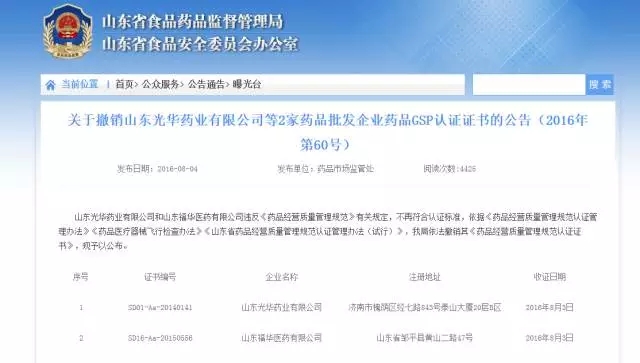 8月3日,一直在醫藥圈里面流傳的信息被證實,山東省食藥監局發布公告,撤銷/收回6家醫藥商業公司GSP證書。此前,這個消息一直在醫藥圈里面流傳,不僅僅在山東醫藥圈,在全國醫藥圈里面都引發不小的震動。