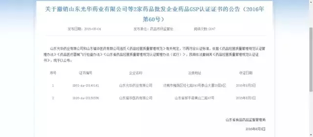 前些天朋友圈沸沸揚揚傳播出山東知名醫藥公司被食藥監局收回GSP事件,后某鄉辟謠此事子虛烏有。然而,2016年8月4日,山東省食藥監局正式曝光通告,證明此事屬實。
