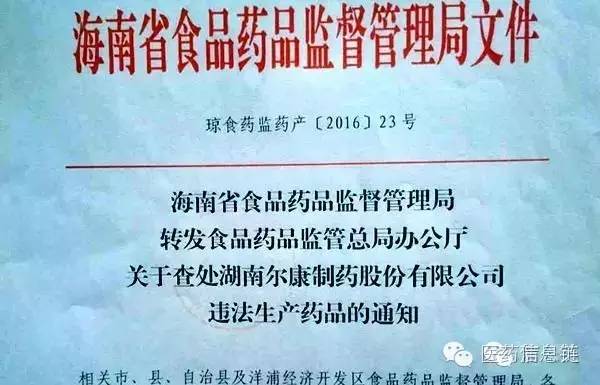 國家食藥監總局指出,爾康制藥的上述行為已涉嫌違反國家《藥品管理法》及《藥品生產質量管理規范》的有關規定,并向全國地方食藥監部門下發《通知》。