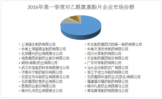 安乃近片和對乙酰氨基酚片同樣存在行業集中度較低,產品同質化嚴重的問題。但相比之下,這兩種低價藥有向龍頭企業集中的趨勢。2016年第一季度,上海醫藥集團有限公司信誼制藥總廠占了安乃近片銷售總額的86.31%,而在乙酰氨基酚片的競爭格局下,上海強生制藥有限公司奪了75.07%的份額。