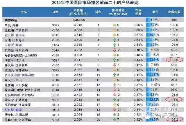 但分析一下2015年中國醫院市場排名前20的藥品,就可以看到,中國醫藥市場多年來受各種因素的影響,臨床使用較多的藥物,在一定程度上是扭曲的。那些被限制使用的產品,銷售額排名卻靠前。