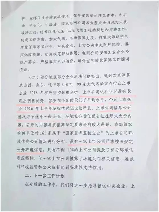 二、將中央企業、上市公司納入達標計劃工作體系中,全面系統提升其達標排放水平和環境信息披露水平,督促屬國家重點監控企業的中央企業、上市公司,嚴格按照《國家重點監控企業自行監測及信息公開辦法(試行)》各項規定開展自行監測并公開結果,并將研究制定《上市公司環境信息披露指南》,環保部門還將通過在線監控電子督辦系統嚴懲超標行為。