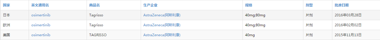 奧西替尼的上市,本身而言,就是一個屌絲變身高富帥的快速進階史。據悉,從臨床試驗到上市許可僅歷時兩年半,是阿斯利康史上研發速度最快的新藥項目。15年在美國上市后,又分別于2016年2月和3月在歐洲和日本上市,之后陸續在巴西、香港、新加坡、臺灣、沙特阿拉伯等多地上市。