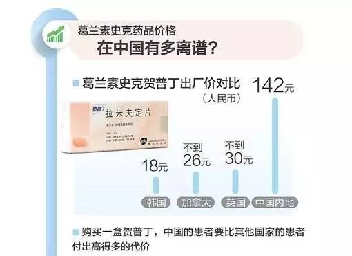 據當時的新華社報道,“以知名藥品賀普丁為例,在中國的出廠價是142元,而在韓國只有18元,在加拿大不到26元,在英國不到30元,在德國、日本等國家,其出廠價也遠遠低于中國。也就是說,購買一盒賀普丁,中國的患者要比其他國家付出高得多的代價”,甚至“該公司在華銷售的藥品價格最高可達其他國家的7倍”。