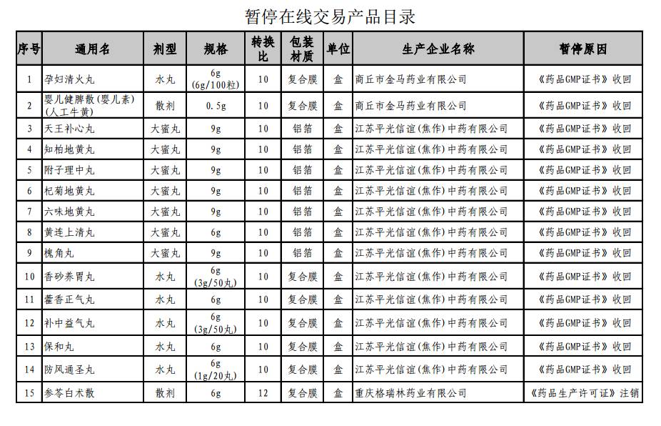 今日(4月6日),浙江省藥械采購中心公布一批取消在線交易資格的產品,15個產品均是中成藥,其中14個被收回GMP證書,1個藥品生產許可證被注銷。