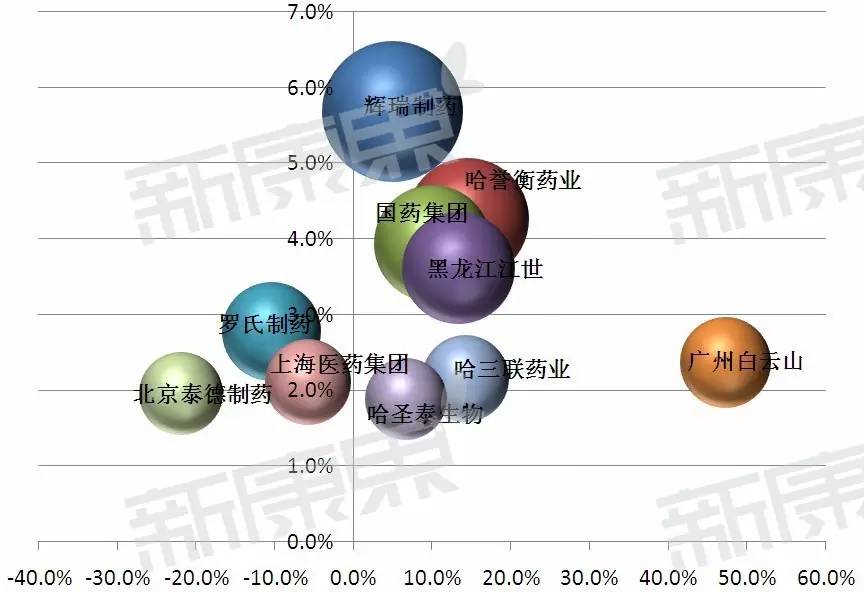 類風濕關節炎藥物Top10企業市場規模合計為176億元,較2014年上升6.0%,市場份額合計30.7%,而且大部分企業均表現出增長態勢。其中,輝瑞制藥以5.7%的市場份額奪魁。另外,在top10 企業中,內資企業占八個席位,占有絕對優勢。