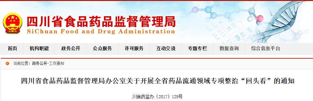 四川省食品藥品監督管理局辦公室關于開展全省藥品流通領域專項整治“回頭看”的通知