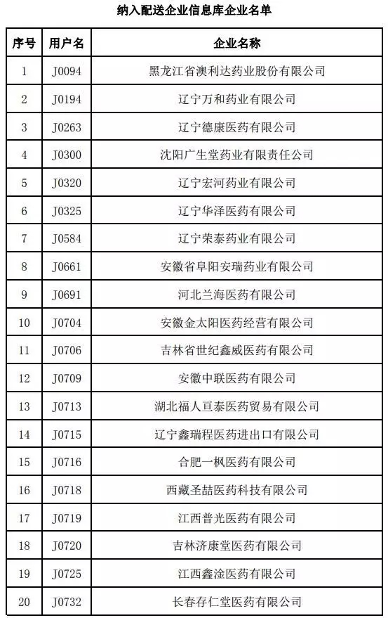 4月17日,遼寧發布《2017年遼寧省關于將部分企業納入配送企業信息庫的通知》,該通知顯示,目前該省新一輪藥品配送企業報名及資料審核工作已經結束,現將合格藥品配送企業予以公布(詳見附表)并納入藥品配送企業信息庫。即日起,中標生產企業可與這40家配送企業建立配送關系。