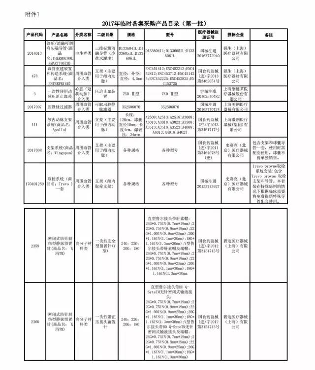 1.2017年臨時(shí)備案采購產(chǎn)品目錄(第一批)