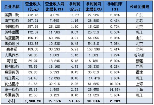 (注:以商務部《藥品流通行業運行統計分析報告(2015)》2015年醫藥批發百強排名進行排序)