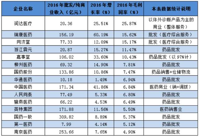 提供細分領域——體外診斷產品為主的商業企業潤達醫療毛利率竟高達25.87%,這一水平讓著實眾多藥品批發企業艷羨。