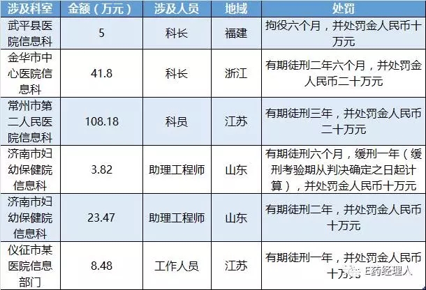 根據(jù)中國裁判文書網(wǎng)公開的信息,2016年因“統(tǒng)方”被判刑的醫(yī)院工作人員中,全部集中在醫(yī)院信息科,其中既有科長等領(lǐng)導職務者,也有普通的工作人員。涉案金額由3萬元至百萬元人民幣不等,而刑期最長的,則被判處有期徒刑三年,刑期最短的,也判以拘役六個月的懲罰。