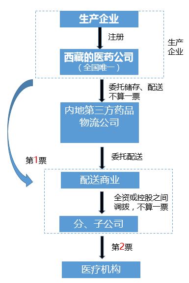由于西藏地理環境較為特殊,地域廣大交通不便,內地企業在西藏注冊可行,但配送不可行,特別是在新版GSP法規以及兩票制政策要求「貨票款」一一對應,想實現內地與西藏之間貨票同行幾乎是不可能完成的任務。因此,注冊在西藏,并通過委托內地有第三方藥品物流資質的企業進行藥品儲存及配送業務是一個非常好的應對模式。