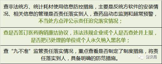 從上面巡查細則可以看出,現在處方點評后追責要來了,中間是否存在行賄成檢查重點。同時,統方也成為醫藥反腐關注的重點,反統方軟件的安裝已經成為硬指標,將在大醫院得到大范圍推廣。