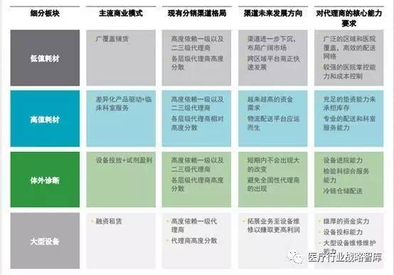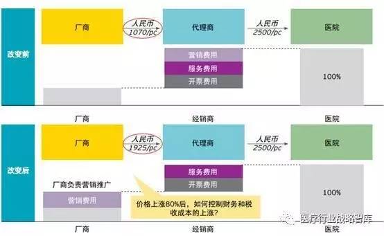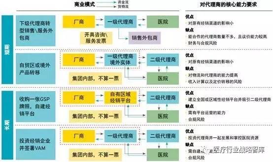 兩票制下,耗材以及試劑的生產(chǎn)商必然面臨渠道的模式轉(zhuǎn)型,而轉(zhuǎn)型牽扯甚廣,不僅有渠道模式的轉(zhuǎn)變,還牽扯到代理商的分類和重新選擇,價格的調(diào)整以及稅、財務(wù)和合規(guī)方面的考量。對代理商而言,原來的一級和大規(guī)模區(qū)域代理商會繼續(xù)拓展自己的渠道網(wǎng)絡(luò),提高覆蓋率,并加強對終端資源的掌控;而二級以及以下的代理商的未來轉(zhuǎn)型有很多種可能,或通過與生產(chǎn)商談判升級成為一級代理商,或被一級代理商收購,成為其銷售外包商,或者轉(zhuǎn)型成為配送商。在轉(zhuǎn)型過程中,生產(chǎn)企業(yè)必須根據(jù)自身產(chǎn)品的特點、目標醫(yī)院分布以及成本等考量因素,合理選擇代理商并建立新的合作關(guān)系;而代理商則根據(jù)自己的能力和未來發(fā)展規(guī)劃重新和生產(chǎn)商談判劃分渠道責任,以保證最大利益。因此,轉(zhuǎn)型的過程亦是生產(chǎn)商和代理商的新一輪的博弈。