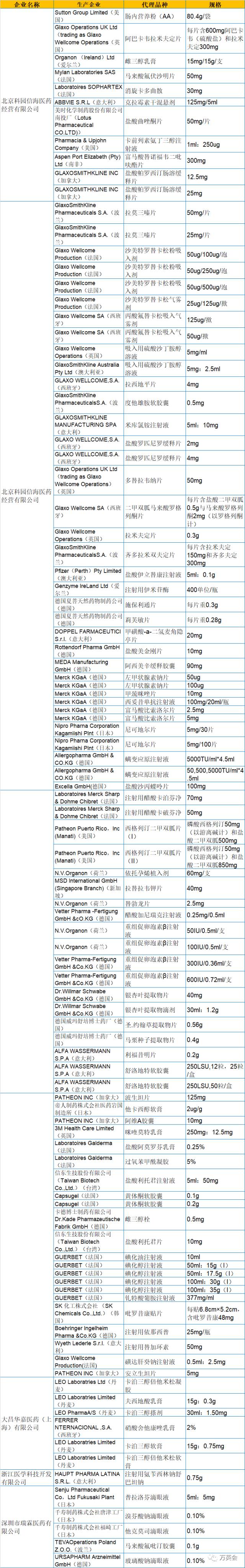 境外藥品國內總代理(全國僅限1家國內總代理)企業名稱