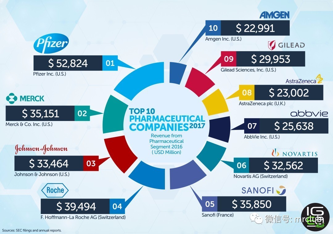 小伙伴們還記得知名醫(yī)藥咨詢公司Igeahub發(fā)布的《2016年全球制藥企業(yè)TOP10》(點擊可進入MRCLUB歷史消息)嗎?今年 Igeahub 同樣推出一份最新的排名(見上圖)。