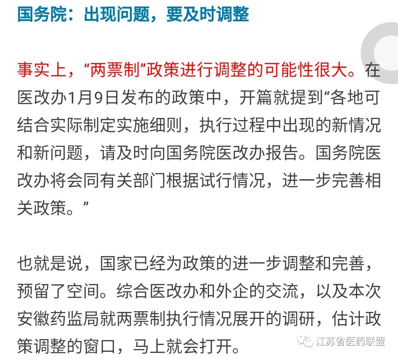 自今年1月9日國務院醫改辦發布《關于在公立醫療機構藥品采購中推行“兩票制”的實施意見(試行)》以來,近5個月過去了。5個月來,兩票制在具體執行中出現的問題,對于不少醫藥行業人士來說,應該是有所耳聞。近期,包括醫改辦在內的相關部門正在加緊搜集一線信息。而在昨天(6月5日),安徽藥監局更是下發了兩票制執行情況調研的通知。種種跡象表明,兩票制政策或有進一步的調整、完善。