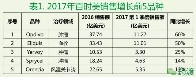 2017第一季度百時美施貴寶明星產品淺析