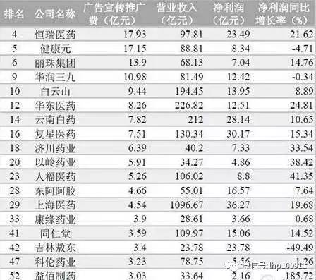 東方財富網此前一組公開數據顯示,在 “2016年上半年上市公司廣告投入榜”上,在廣告投入排名前55位的上市公司中,恒瑞醫藥、健康元、麗珠集團、華潤三九、白云山等19家醫藥企業位列其中。