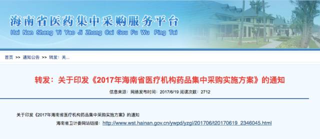 19日,海南省衛(wèi)計(jì)委發(fā)布了關(guān)于印發(fā)《2017年海南省醫(yī)療機(jī)構(gòu)藥品集中采購(gòu)實(shí)施方案》的通知。