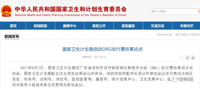 今日,國家衛計委官網發布消息,宣布啟動按疾病診斷相關分組(DRGS)收付費試點。根據衛計委官網信息,該啟動會議于2017年6月2日舉辦,多日之后,國家衛計委再次掛出此消息,可見對此項改革的重視。