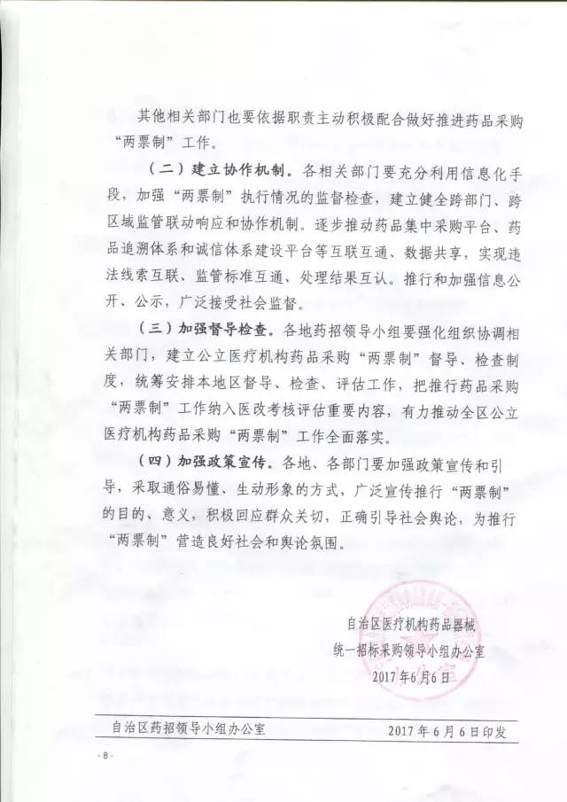 為扎實推進《廣西壯族自治區公立醫療機構藥品采購“兩票制”實施方案(試行)》(桂醫改辦〔2017〕18號)的實施,現將有關事項通知如下: