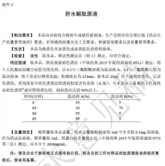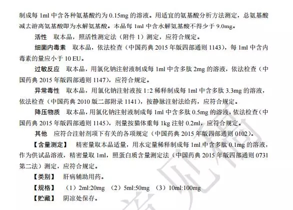 關于肝水解肽注射液國家標準的公示