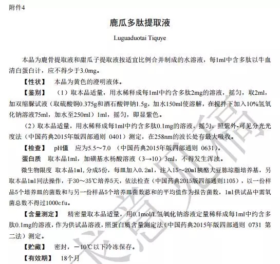 關于鹿瓜多肽注射液國家標準的公示