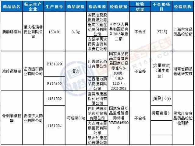 總局昨日(7月13日)發布通告,經上海市食品藥品檢驗所等3家藥品檢驗機構檢驗,標示為安徽濟人藥業有限公司等3家企業生產的5批次藥品不合格。