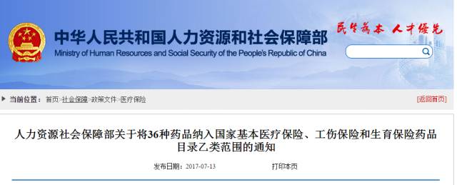 一、將利拉魯肽注射劑等36種藥品(以下統(tǒng)稱“有關(guān)藥品”)納入《國家基本醫(yī)療保險、工傷保險和生育保險藥品目錄(2017年版)》(以下簡稱藥品目錄)乙類范圍,各省(區(qū)、市)社會保險主管部門不得將有關(guān)藥品調(diào)出目錄,也不得調(diào)整限定支付范圍。