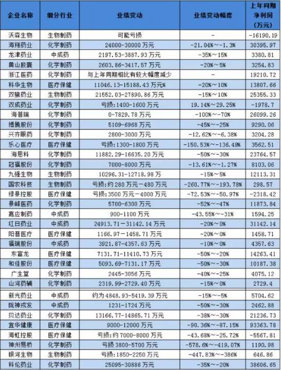 根據(jù)已經(jīng)發(fā)布業(yè)績預(yù)告的藥企情況來看,其中有34家凈利出現(xiàn)下降或虧損。其中沃森生物、雙成藥業(yè)、綠景控股和海虹控股在2016年同期已是虧損,則今年繼續(xù)虧損。