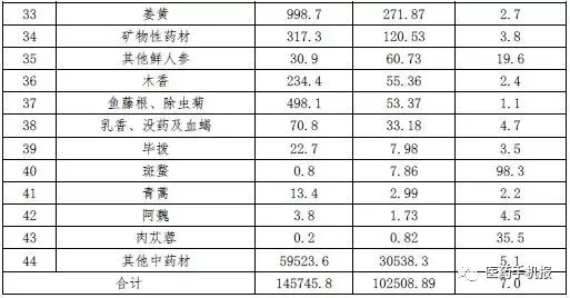 2016年,我國中藥材及飲片出口總額10.25億美元,同比下降3.17%;以人民幣折算,出口總額67.69億人民幣,同比上漲2.97%;中藥材及飲片出口總量14.57萬噸,同比下降18.71%;中藥材及飲片平均出口單價46.43元/公斤,同比上漲26.71%。