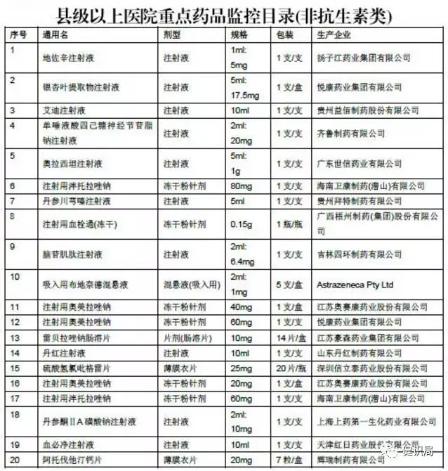 有的地方雖然未出臺(tái)具體監(jiān)控清單,但是卻出臺(tái)了標(biāo)準(zhǔn),要求醫(yī)院按照標(biāo)準(zhǔn)遴選本機(jī)構(gòu)重點(diǎn)的監(jiān)控品種。