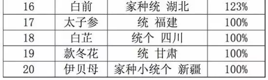 2016年價格漲幅排行前20品種 數據來源:中藥材天地網。