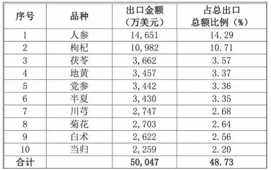 我國中藥材資源豐富,出口中藥材及飲片品種達數百種。2016年,出口金額和出口數量較多的品種依然以滋補養生類為主。